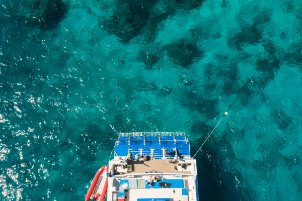 Lunch includes a tasty self-serve buffet. There is also a morning tea and an afternoon snack. Additionally, you’ll have access to a marine specialist, glass bottom boat and flotation devices.