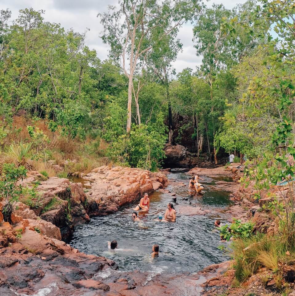 Get some cool photos at the magnetic termite mounds before spending the afternoon swimming in cascading waterfalls and beautiful streams in this great national park.
