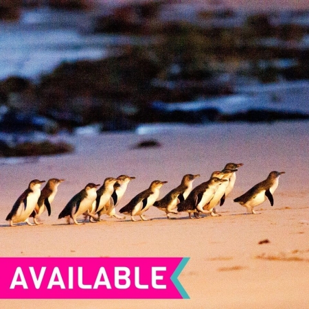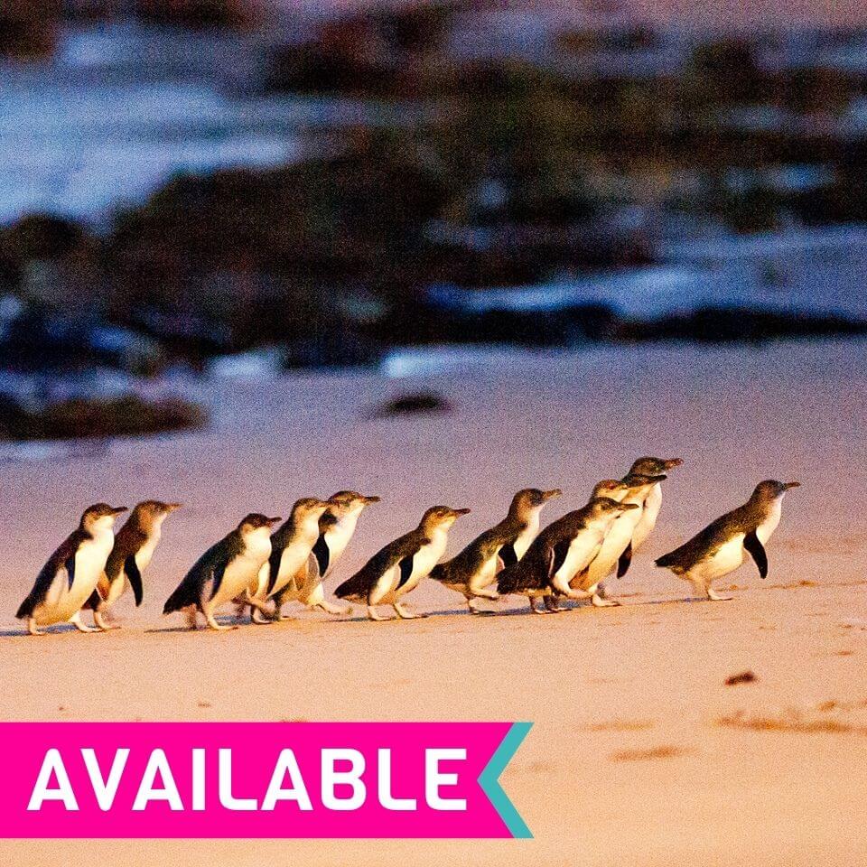 Visit the Nobbies boardwalk for breathtaking ocean views out to Seal Rocks before making your way to the world-famous Penguin Parade. Summerland Beach makes for a magnificent setting as you watch Victoria’s largest colony of penguins return home from the sea. Watch them waddle up the beach and return to their burrows as the sun sets on a magnificent day.