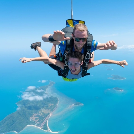 Discover why Mission Beach is the top destination for skydiving! You’ll ascend to take in the amazing views over 14 kilometres of white sandy beaches, emerald rainforest, the Great Barrier Reef, tropical islands and turquoise water as far as the eye can see. But the incredible vistas are just a small part of this amazing experience. Get ready for the thrill of a lifetime as you leap from the plane to freefall at over 200kms per hour for up to a full minute. Once the parachute is released, you’ll have up to seven minutes to soak up the stunning views from under the canopy as you float back down to land on the tropical beach below.